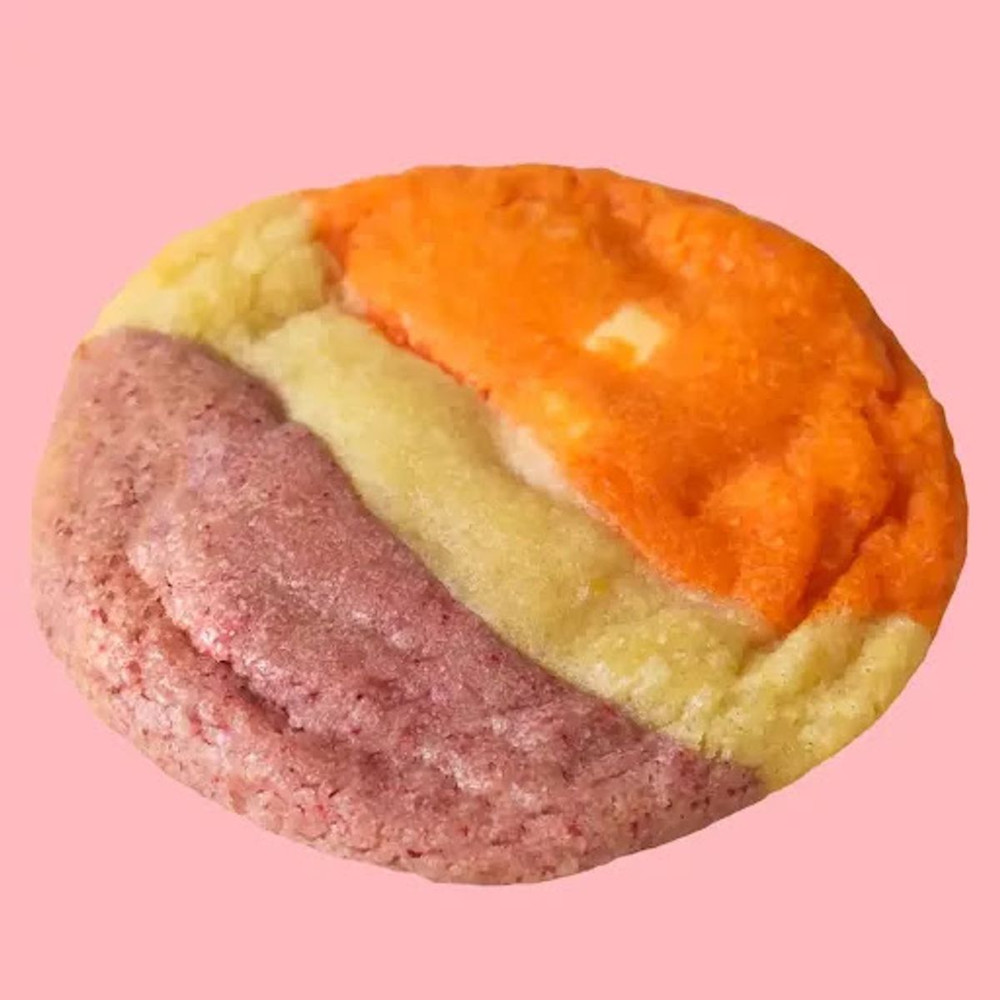 Frambuesa y maracuyá combinan para crear este ponche galletero. Trozos de chocolate de frambuesa y maracuyá entregan una dosis frutal a esta cookie.